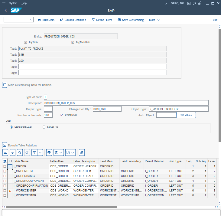 Production Order by CDS VIEWS