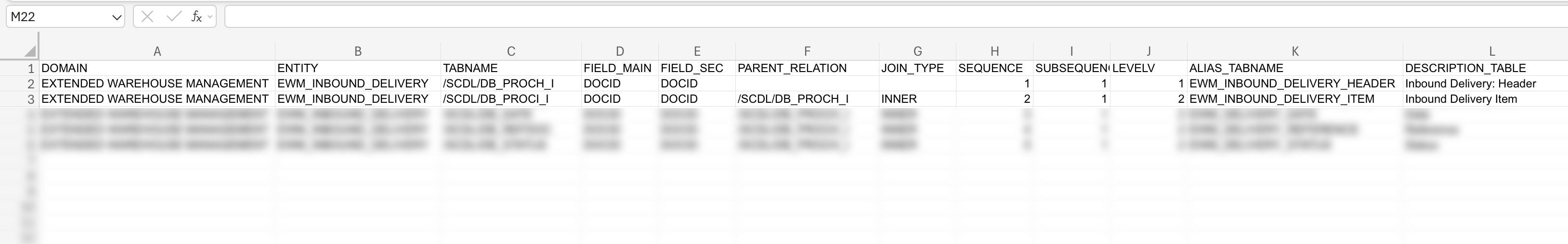 Gain immediate visibility into the specific SAP tables included in this Data Product. This section outlines the core EWM Inbound Delivery tables and their definitions, helping you assess data availability upfront to streamline your customization and deployment strategy.